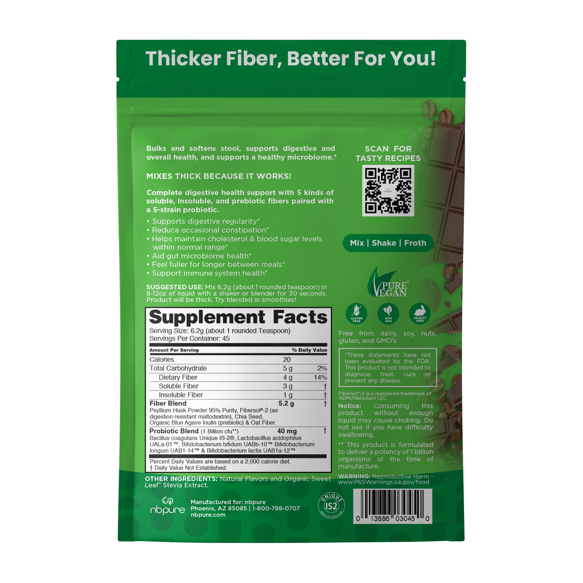 - Natural fiber with pre and probiotics. Vegan. Non-GMO.