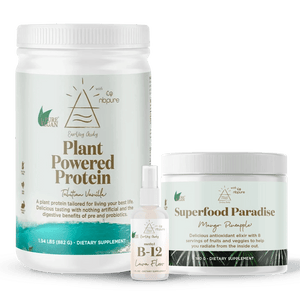 This bundle is the ultimate trifecta for supporting your health goals and glowing from the inside out! It includes all your faves: Superfood Paradise, Tahitian Vanilla Plant Powered Protein, and B12 lava flow. Earthy Andy and nbpure have partnered to create convenient, yet effective ways to support vibrant health for the whole family. We know life is busy and at times unpredictable, so we curated the Earthy Andy’s Bliss Bundle, which may support relief from unwanted bloat, increase natural energy, improve nervous system function and mood, and provide essential antioxidants. Taking this trifecta may even support smooth, glowing skin, more luxurious hair, stronger nails, and improvement in overall health!*