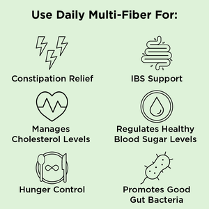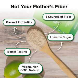 Not your mother's fiber. 95% of Americans don’t get enough fiber which may cause constipation, irregular poops, spiking blood sugar, high cholesterol, and hunger cravings! Mass market supplements don’t cut it. Daily multi-fiber has complete soluble and insoluble fibers that may help you poop, feel full, and slow fat, cholesterol, and glucose absorption. It also has prebiotics and probiotics which may further digest stubborn foods, support healthy intestinal inflammatory response, and promote bacterial balance. Bonus: 2 delicious flavors that aren't old-school orange.