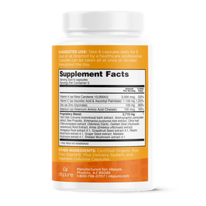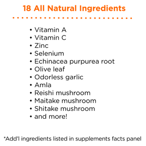 - 18-in-one. Vitamin A, C, Zinc, Selenium, Cats Claw, Andrographis, Mushroom Complex, Echinacea, Astragalus, Amla, Goldenseal, and more.