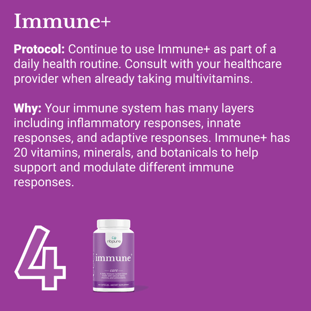 • How: Immune+ is an all-in-one formula that may support healthy inflammatory responses, first-line innate responses, and second-line adaptive responses.
