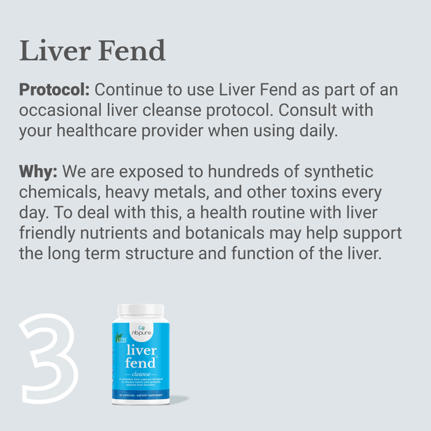The Protocol: Take 1 serving of Liver Fend in the morning with breakfast or snack. Repeat for 30 days.