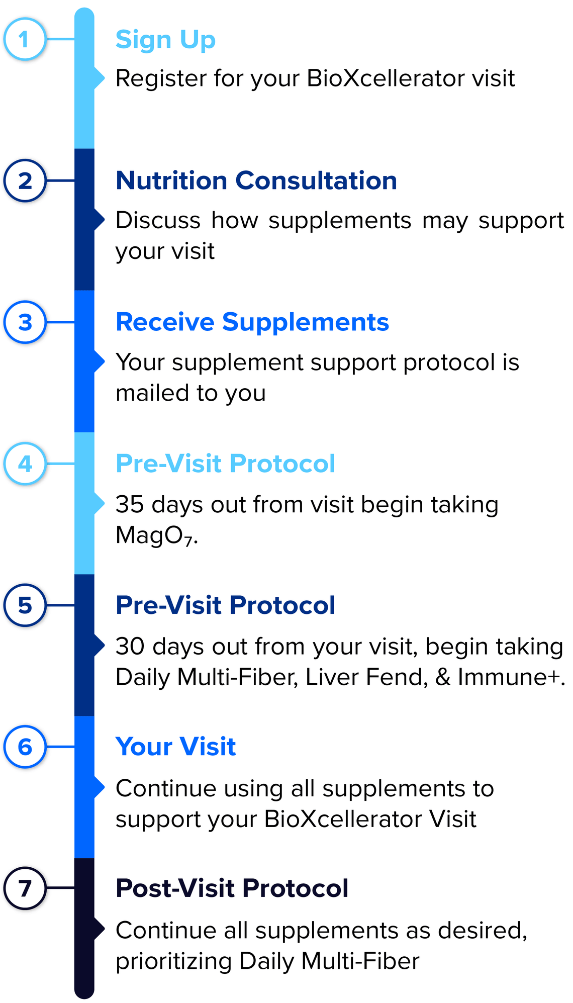 Prepare your body's vital systems and immune system responses before your bioXcellerator visit.