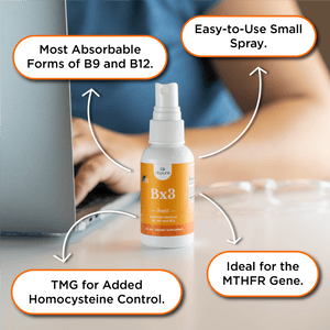 Cardiovascular health affects us physically and mentally. Stress and lifestyle play a strong role in heart health, but many don’t know their genetics may play a role as well. You may have an inability to convert essential nutrients like B12 and B9 into their most usable form. This may lead to high homocysteine levels that may affect long term heart health! BX3 blends l-methylfolate, methylcobalamin B-12, Vitamin B-6, and TMG in a convenient spray that may provide maximum support for healthy homocysteine metabolism.