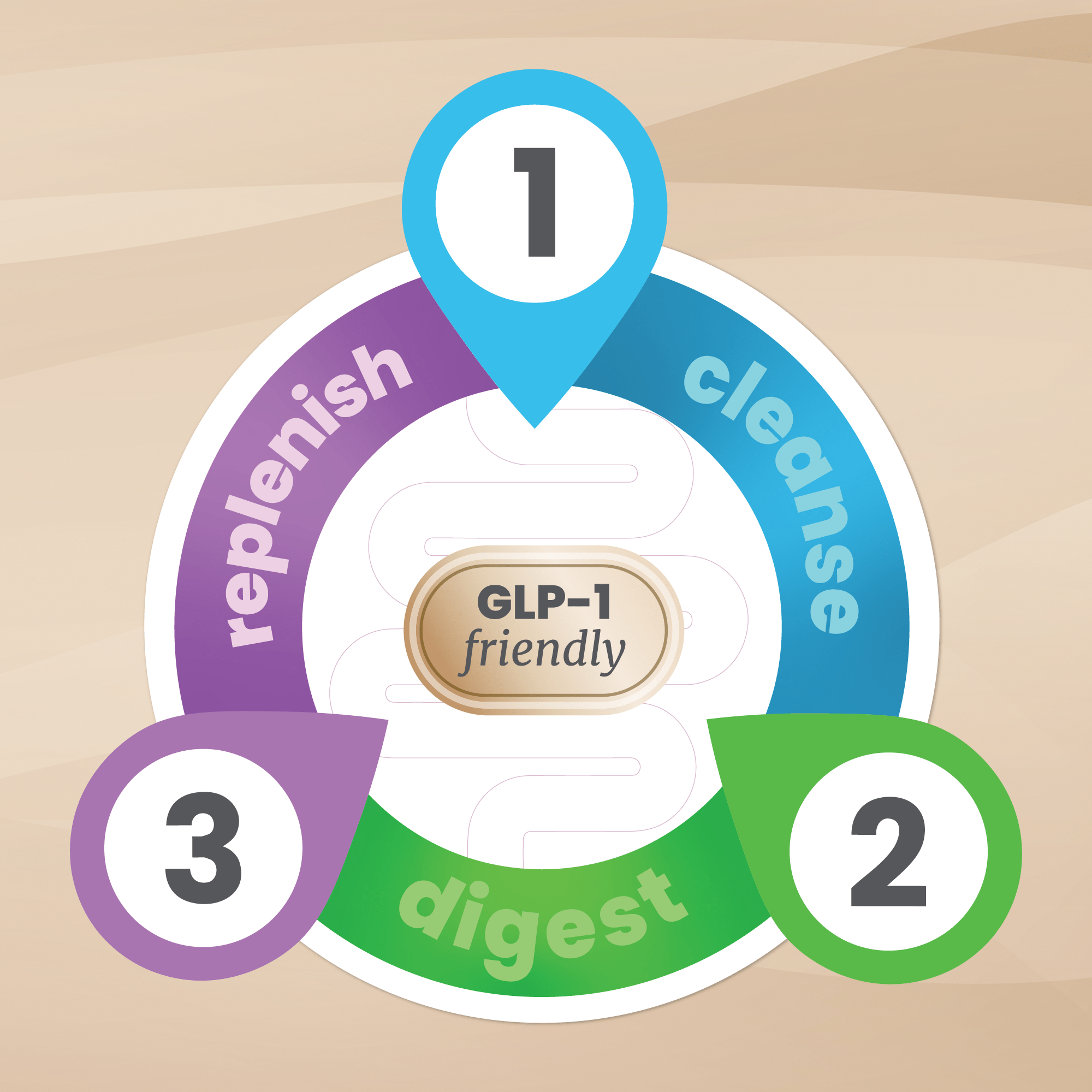 It Just Gut Better. 3 Step routine to get regular, feel fuller, and support a lean, healthy body. GLP-1 Friendly.