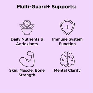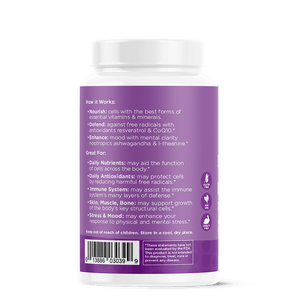 There are dozens of vitamins and minerals your body needs, but cannot make on its own. These essential nutrients act together in hundreds of roles needed for life. Every day, your body makes skin, muscle, and bone. Your blood and nervous systems move oxygen and electrical signals across organ systems. Chemicals, like hormones, increase or decrease bodily functions. All this happens while battling toxic free radicals and harmful stress. Multi-Guard+ is the most well-rounded daily multi-supplement for essential nutrients, antioxidant support, and stress management.