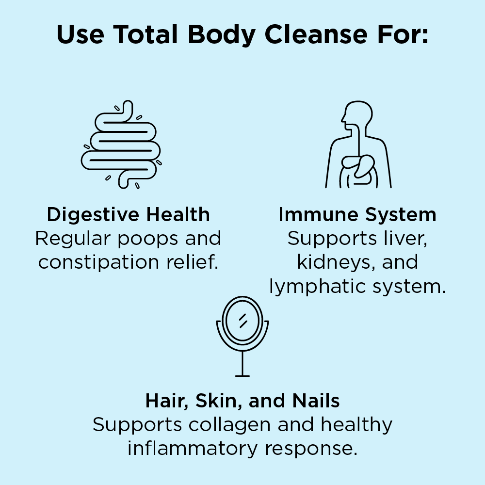 Many organs work together to handle toxins. It’s difficult to eat healthy, let alone take superfoods and botanicals for different organs! You want to do something good that is easy and doesn’t involve a lot of work, numerous pills, or extra money. Total Body Cleanse is a convenient blend of 8 organ-friendly botanicals and soluble fiber from psyllium husk. It’s a fantastic way to get helpful antioxidants and regularity into your day. Bonus: It may even help with some toxic organisms and collagen production!